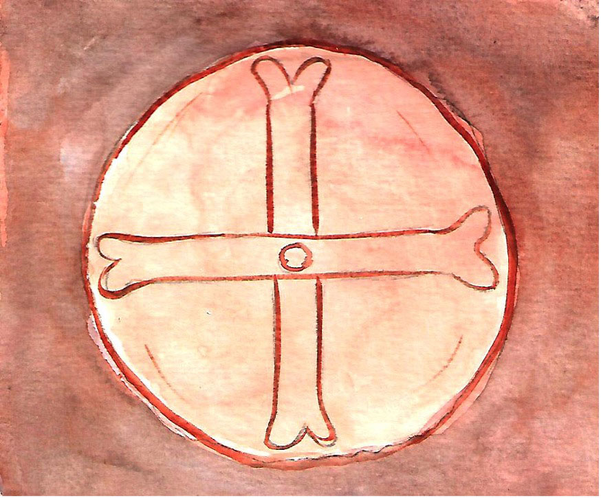 Το βάθος του σπηλαίου το οποίο παριστάνεται βαθυγάλανο, δεν φέρει οποιοδήποτε γράψιμο με σκούρο ή μαύρο χρώμα, το οποίο να καταγράφει το περίγραμμα της εισόδου.