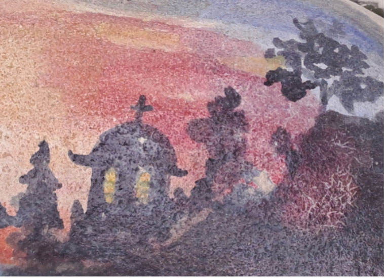 Σαν μικρό παιδί στριφογύριζε το κεφάλι του, κοιτώντας τις αρχαίες εκείνες τοιχογραφίες. Με τα λίγα γράμματα πού’μαθε, άρχισε να ψελλίζει τα ονόματα των Αγίων.