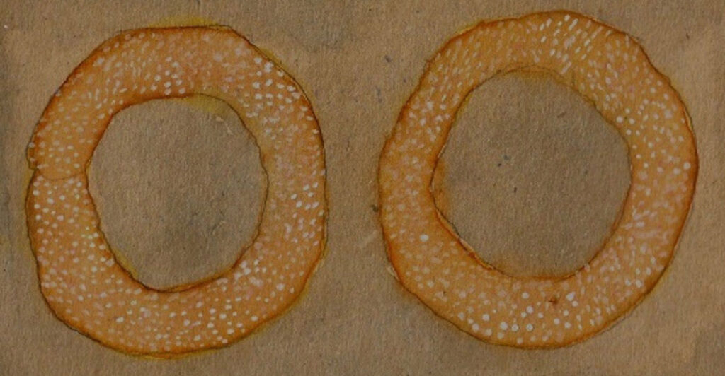 Μαζί με τα ψουμιά τζ̌ιαι τα ποξαμάθκια εκάμναν τζ̌ιαι μιτσιά κουλλουρούθκια.